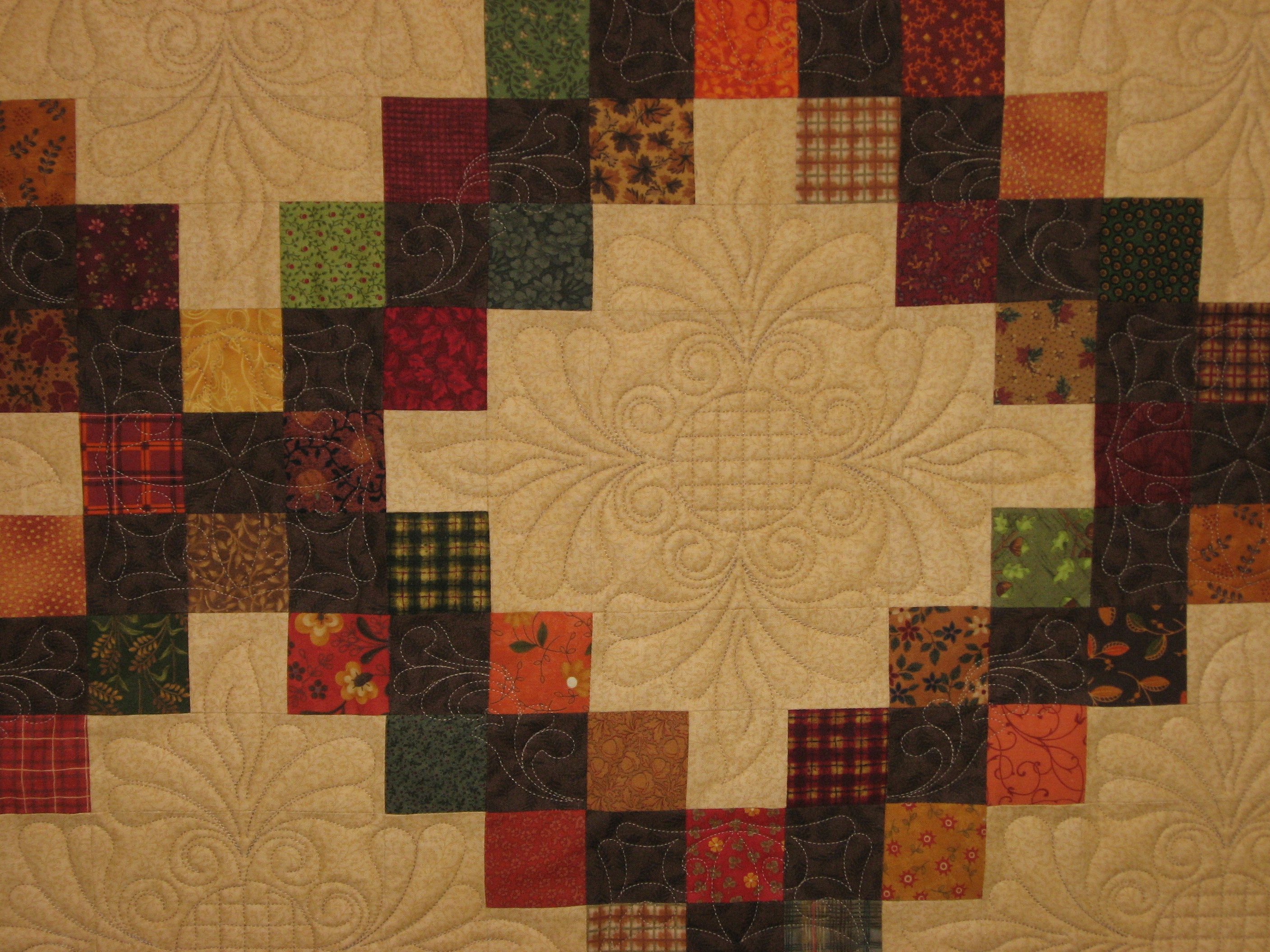 Jackie requested that we create this Double Irish Chain pattern for her own personal quilt. She requested something with cross-hatching, and we were happy to oblige! Our latest block has the appeal of traditional feathers, floral accents for variety, and an eye-catching center cross-hatch, softened with a round shape.